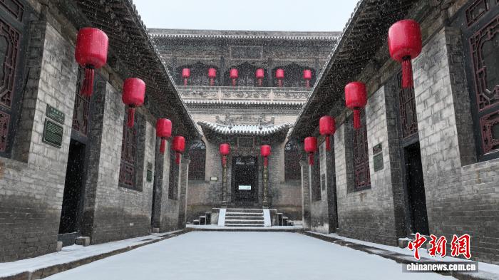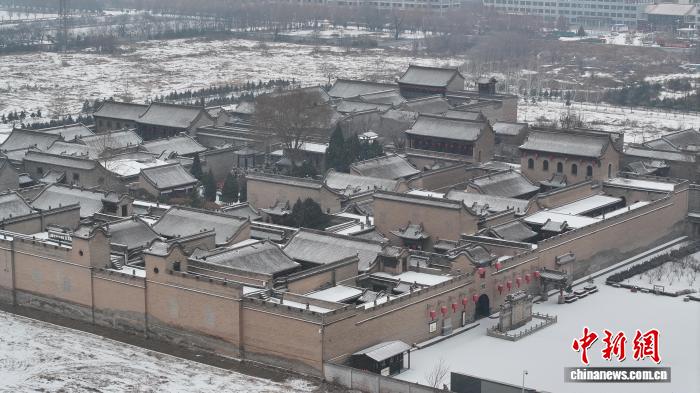 图为航拍雪后的乔家年夜院。刘洋 摄