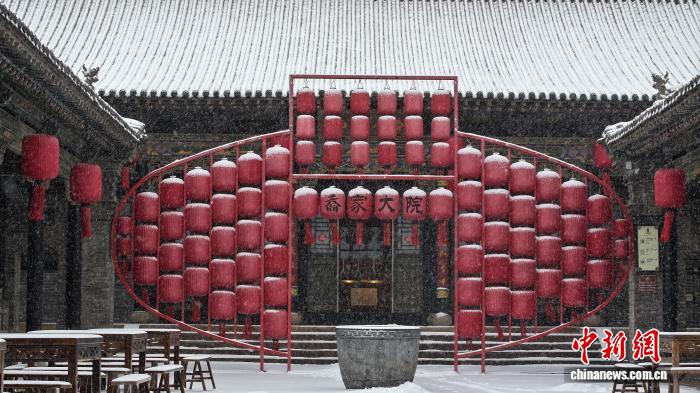 乔家年夜院灯笼阵裹雪而坐,素白压素黑,雪降间衬出古院冬韵。刘洋 摄